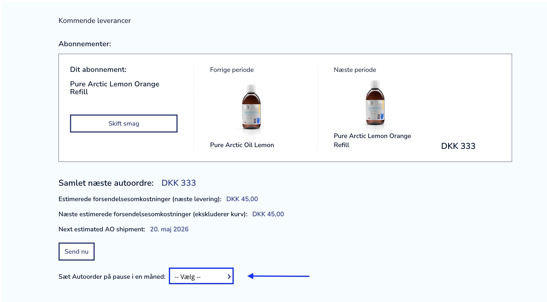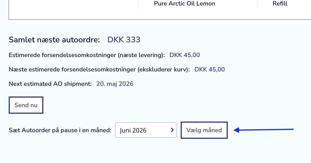 Hvis du har brug for at sætte abonnementet på pause i en længere periode, eller hvis du kun ønsker at sætte en del af dit abonnement på pause, kan du kontakte vores supportteam.
