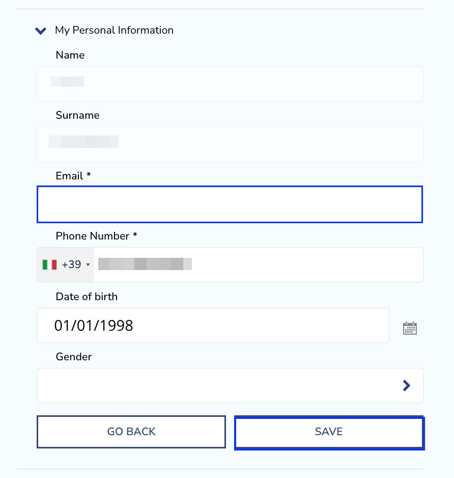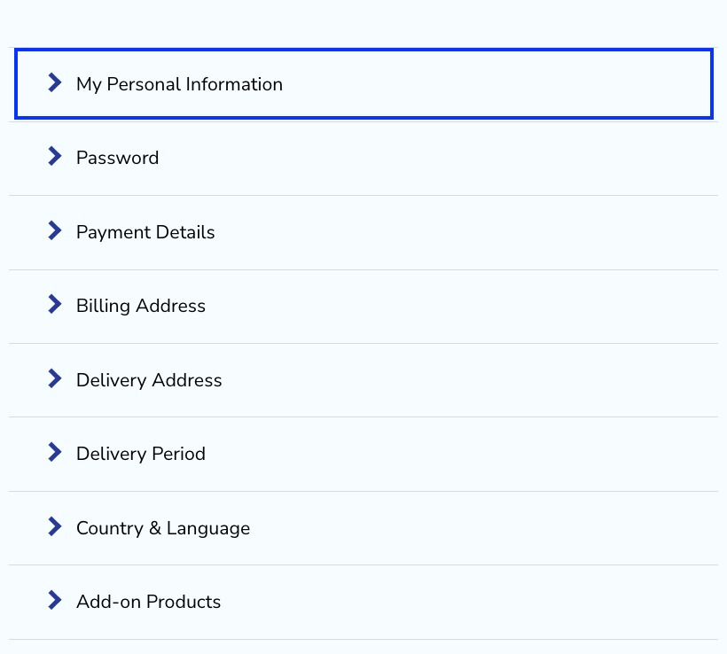 Dernæst skal du vælge MINE PERSONOPLYSNINGER.