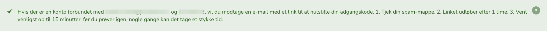 Derefter får du en bekræftelse på, at et nulstillingslink vil blive sendt til din e-mailadresse.