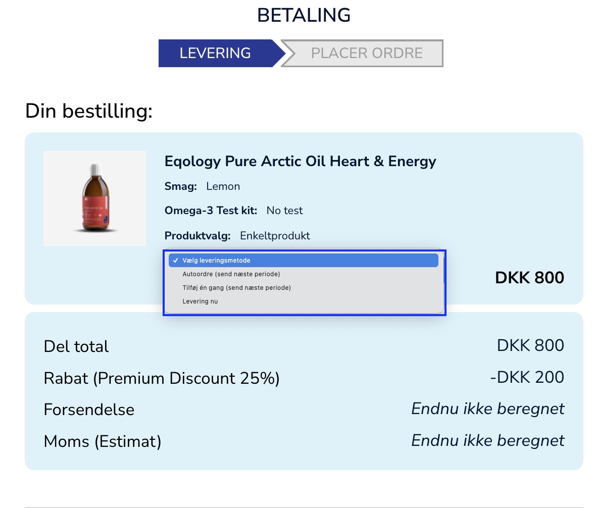 Kun én mulighed vises, fordi det er et abonnement - du vil modtage dette produkt månedligt. Hvis du ønsker at modtage det hurtigere, og du har andre produkter i din autoordre, se her, hvordan du gør det: Hvordan sender jeg min autoordre hurtigere end normalt?.