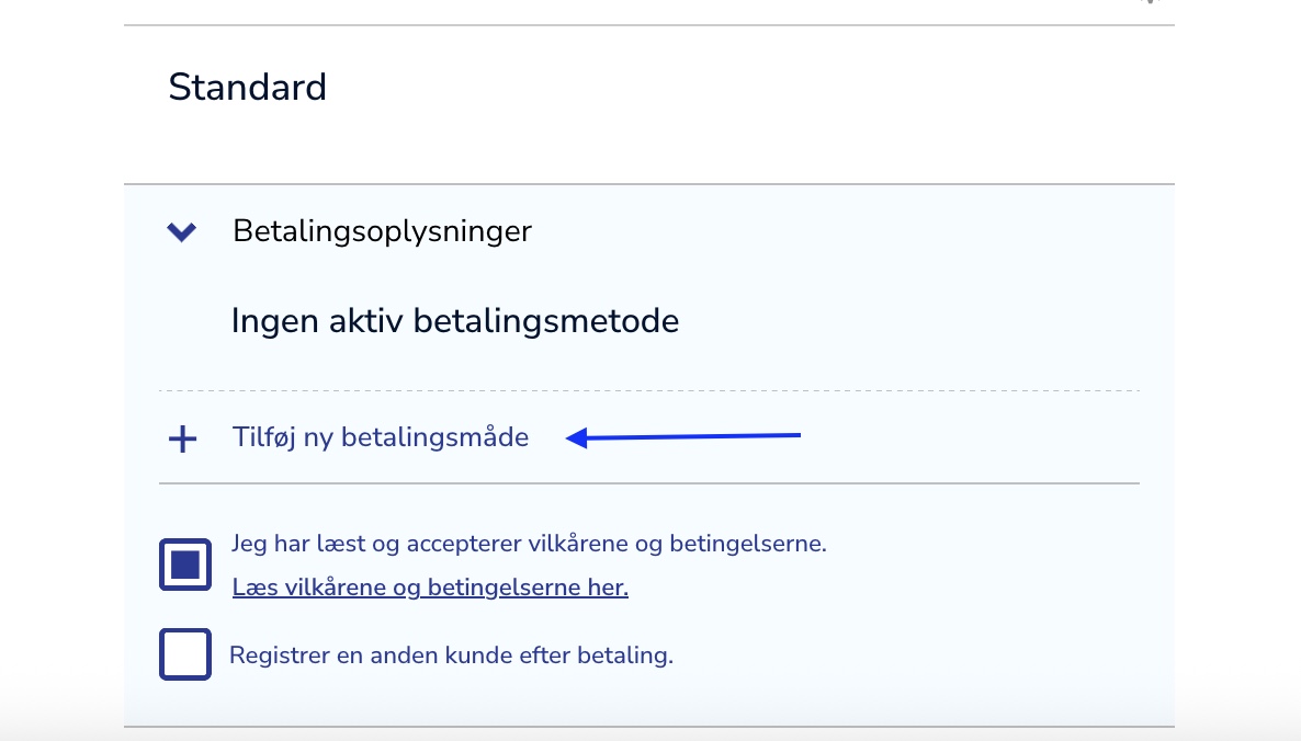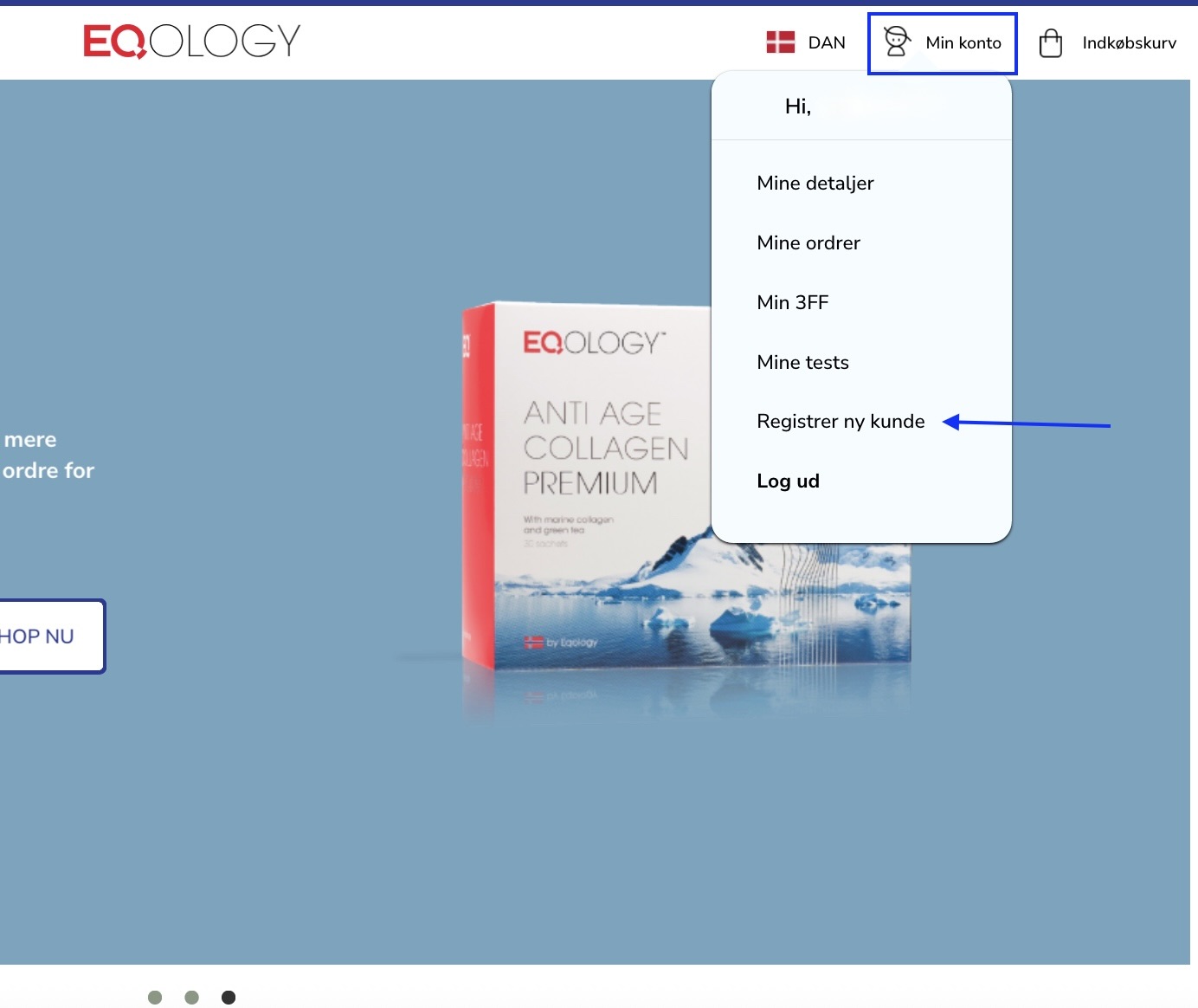 For at registrere en ny kunde, skal du klikke på MIN KONTO og derefter på REGISTRER NY KUNDE i øverste højre hjørne.