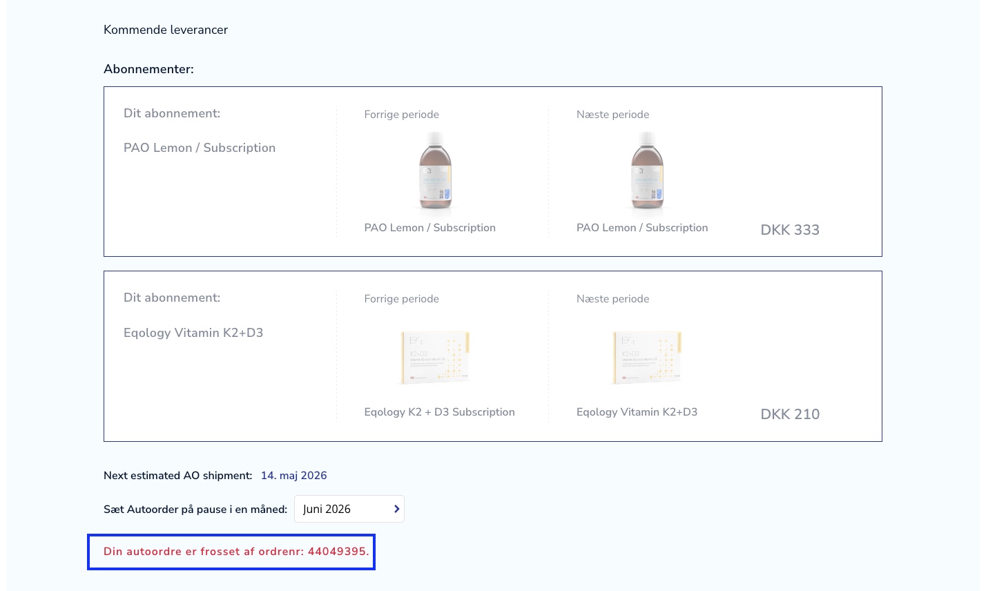 Hvis du ønsker at ændre en ordre, der allerede er behandlet, eller hvis du vil annullere ordren, er du nødsaget til at kontakte vores supportteam for at høre om muligheden for dette (se: Hvornår skal du kontakte Eqology's Supportteam?).