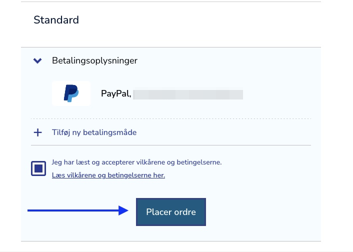 For at bekræfte og færdiggøre ordren skal du klikke på PLACER ORDRE.