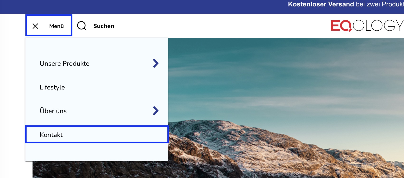 Wenn Sie bereits über die erforderlichen Informationen verfügen, können Sie auf das Menü in der oberen linken Ecke klicken und dann auf „Kontakt“ klicken.