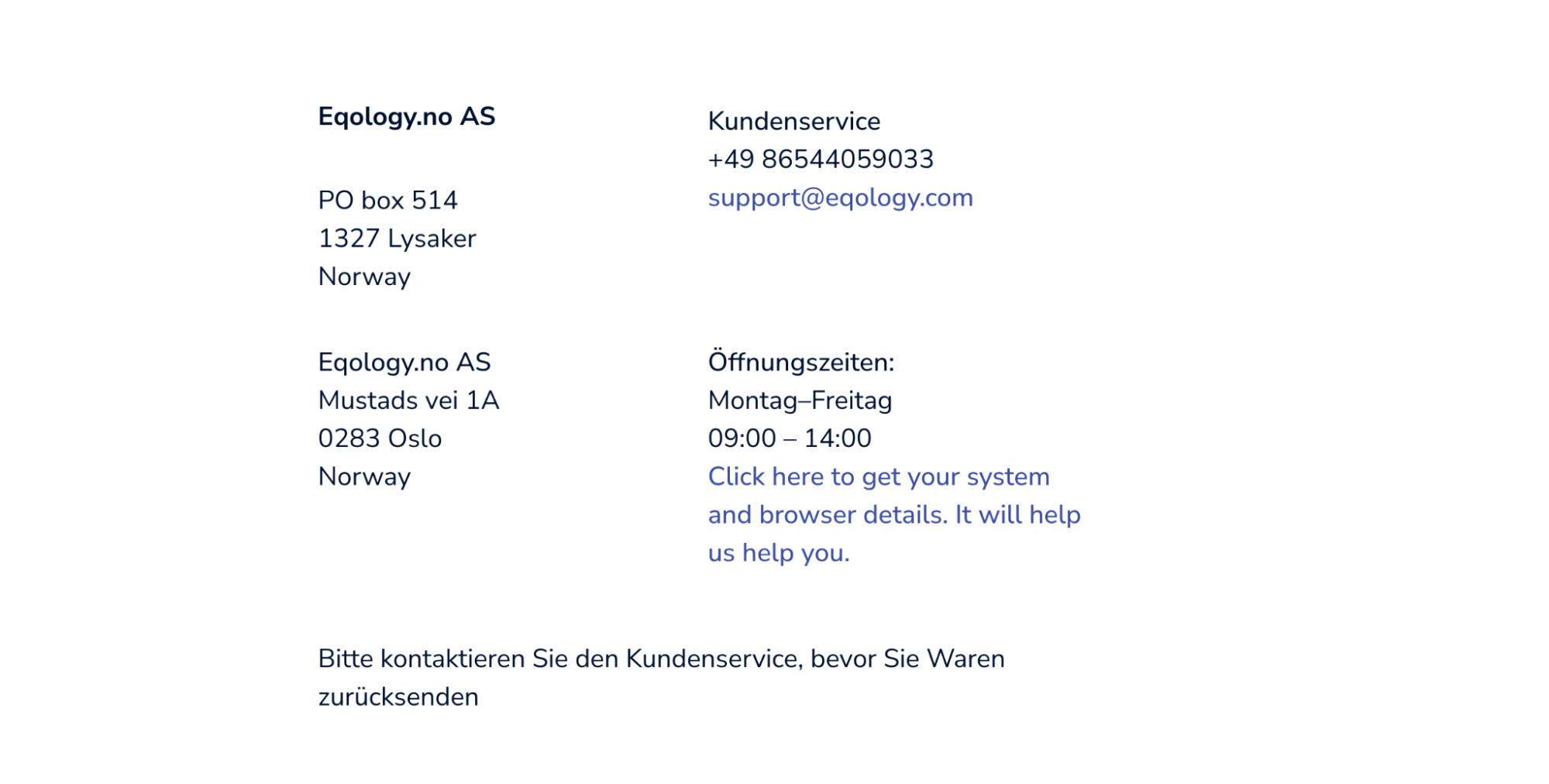 Sie können uns auch direkt per E-Mail unter support@eqology.no kontaktieren.