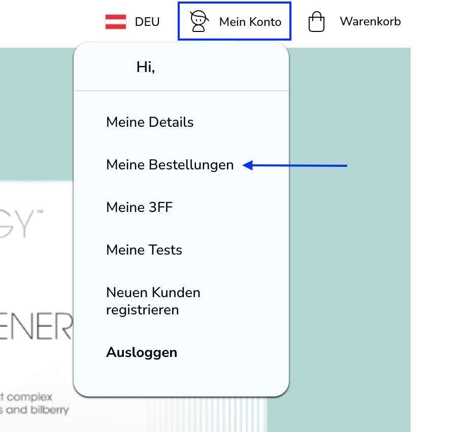 Wenn Sie angemeldet sind, klicken Sie oben rechts auf „Mein Konto“ und dann auf „Meine Bestellungen“.