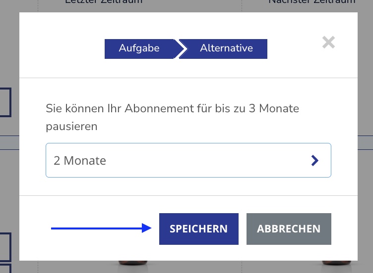 Wählen Sie die Anzahl der Monate aus, für die Sie die Zahlung aussetzen möchten; in unserem Fall sind das zwei Monate. Klicken Sie anschließend auf „Speichern“.