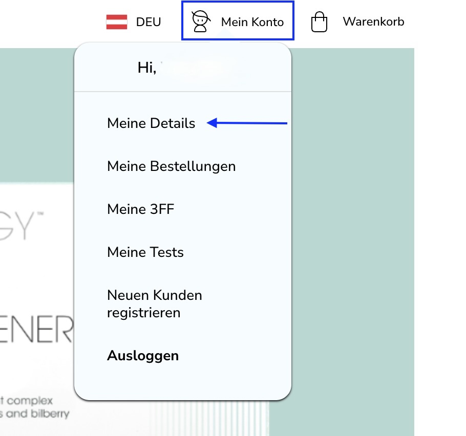 Um die Lieferadresse zu ändern, klicken Sie oben rechts auf „Mein Konto“ und anschließend auf „Meine Details“.