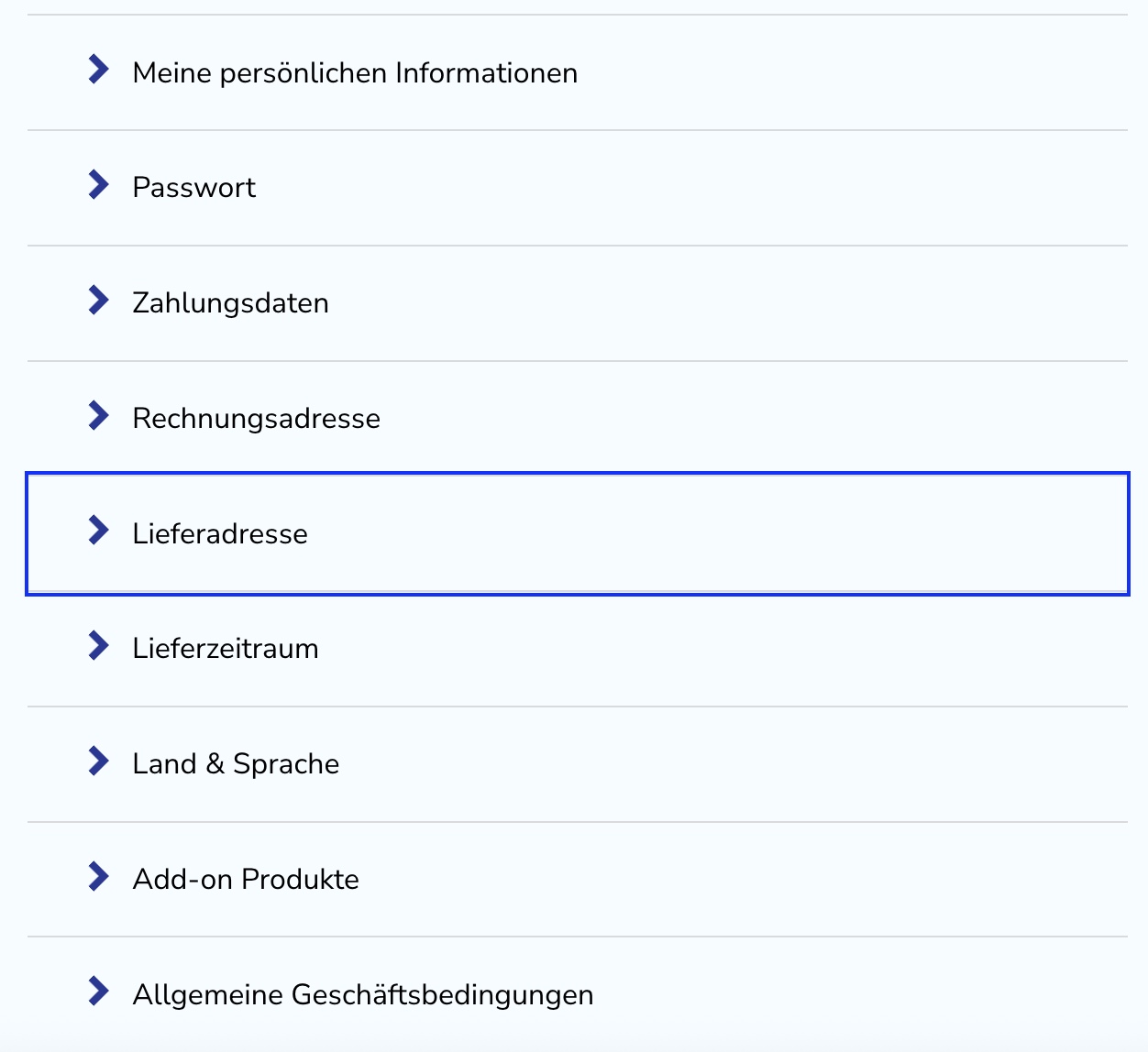 Bitte beachten Sie: Wenn Sie das Land ändern möchten, in das Ihre Bestellungen geliefert werden, können Sie eine entsprechende Anfrage an unseren Kundenservice richten, da Sie die Adresse selbst nur innerhalb desselben Landes ändern können.