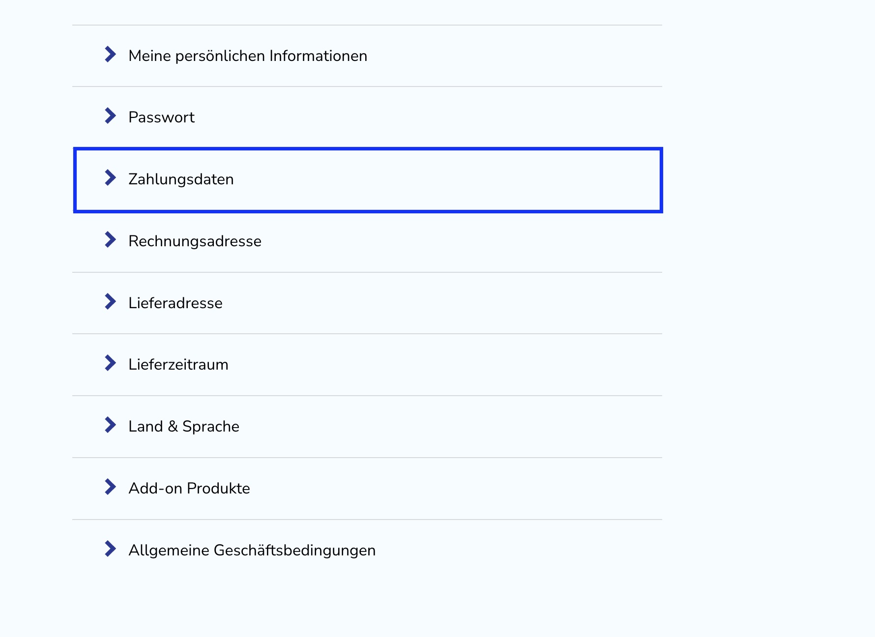 Scrollen Sie dann nach unten bis zum Abschnitt „Zahlungsdaten“ und klicken Sie darauf.