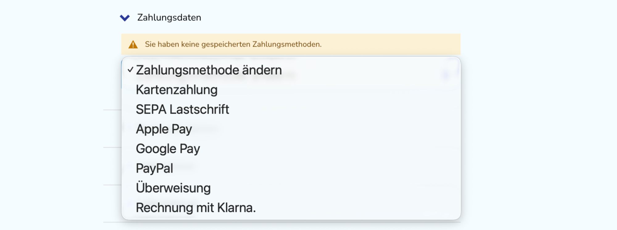 Sie können Ihre Website auffrischen, um sicherzustellen, dass die Zahlungsmethode korrekt geändert wurde.