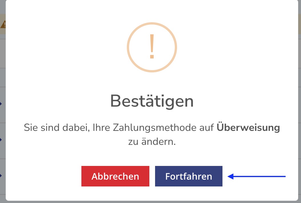 Anschließend müssen Sie den Vorgang bestätigen, indem Sie auf „Fortfahren“ klicken.