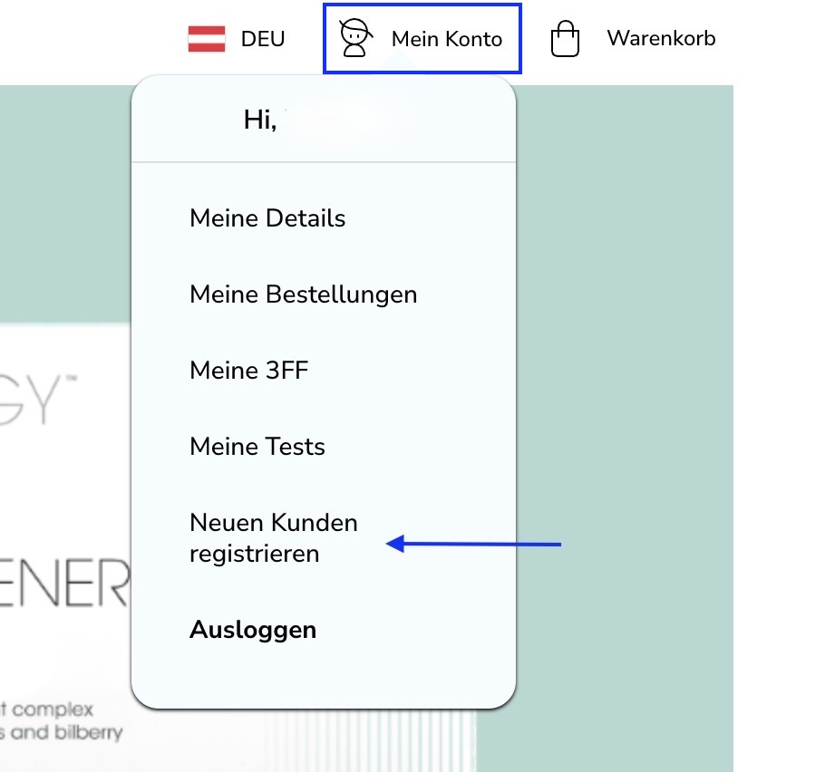 Um einen neuen Kunden anzumelden, klicken Sie bitte auf „Mein Konto“ und dann oben rechts auf „Neuen Kunden registrieren“.
