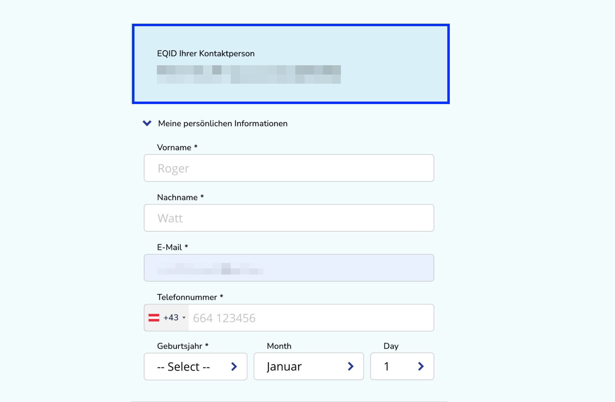 Bitte beachten Sie: Im blauen Feld sehen Sie Ihren Namen und Ihre persönliche EQ-ID. Sollte hier eine andere ID angezeigt werden, melden Sie sich bitte ab und wieder an. Dadurch wird das neue Konto mit Ihrem Profil verknüpft.