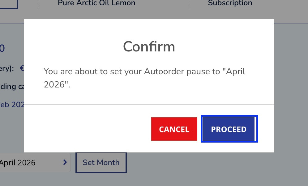 You can pause your subscription one month per year yourself on your account. Go to my account and then my orders.