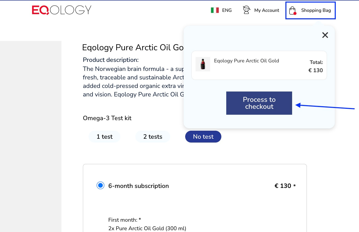 Then click on the shopping bag in the top right corner and -process to checkout.