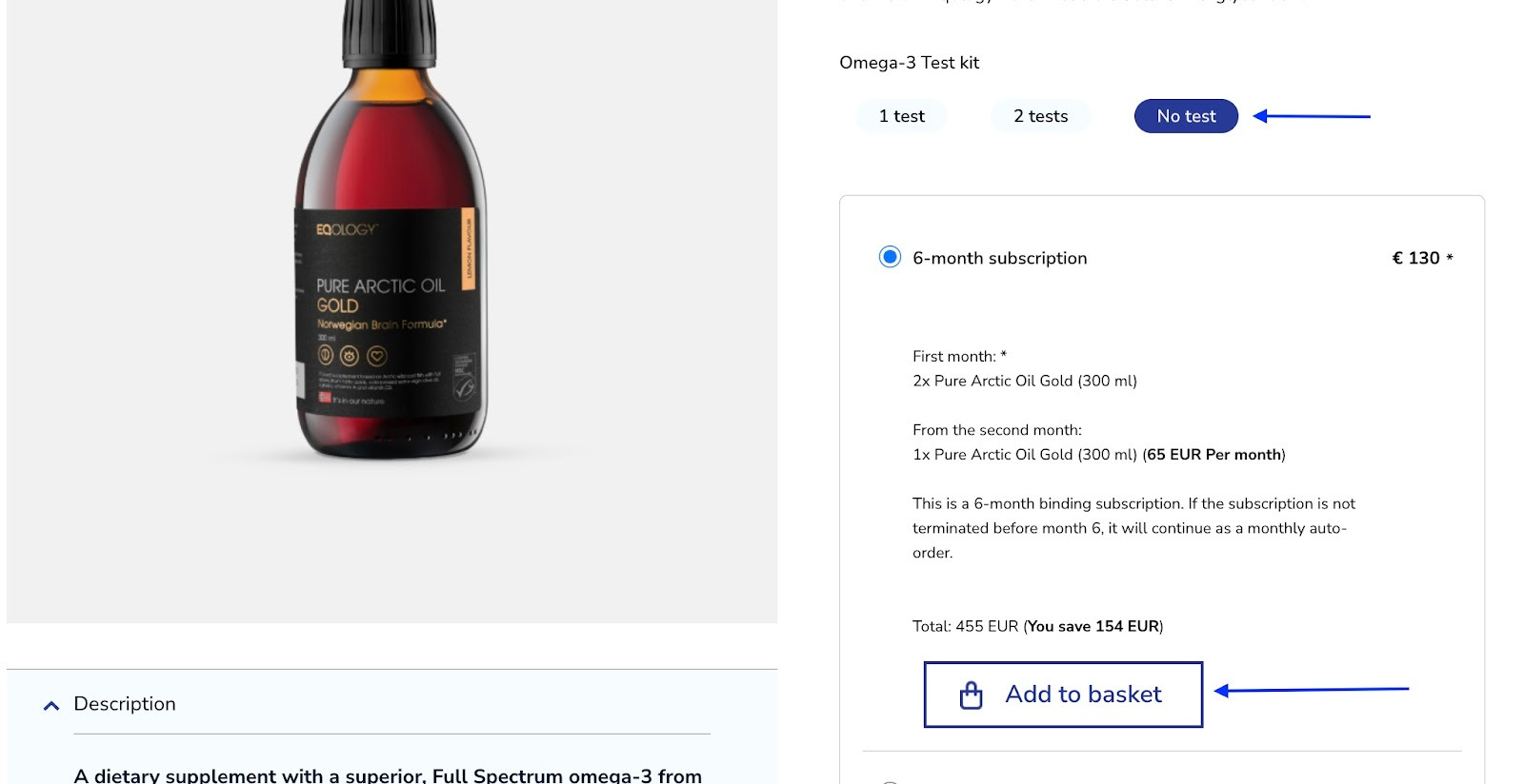 Let’s say you wish to order Pure Arctic Oil Gold but without a test, let’s suppose that you do not need it. Just click on the image of the Pure Arctic Oil Gold.