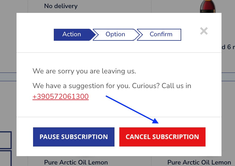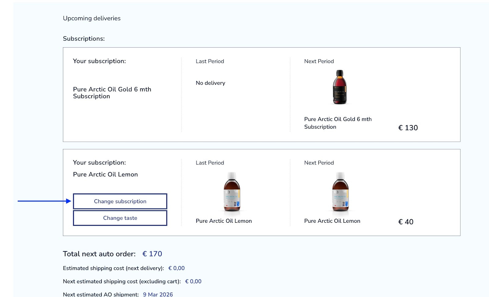 Here you just need to click on the -change subscription button in the Pure Arctic Oil Lemon chart (or the product you would like to remove)