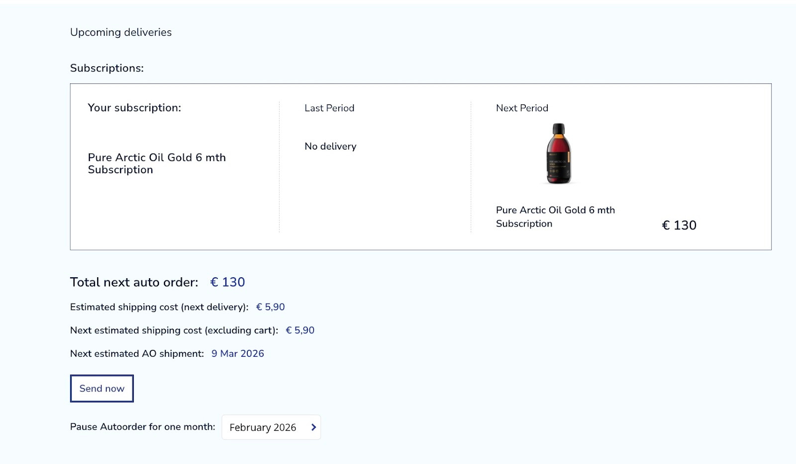 You will receive a confirmation that Pure Arctic Oil Gold has been added to your monthly subscription.