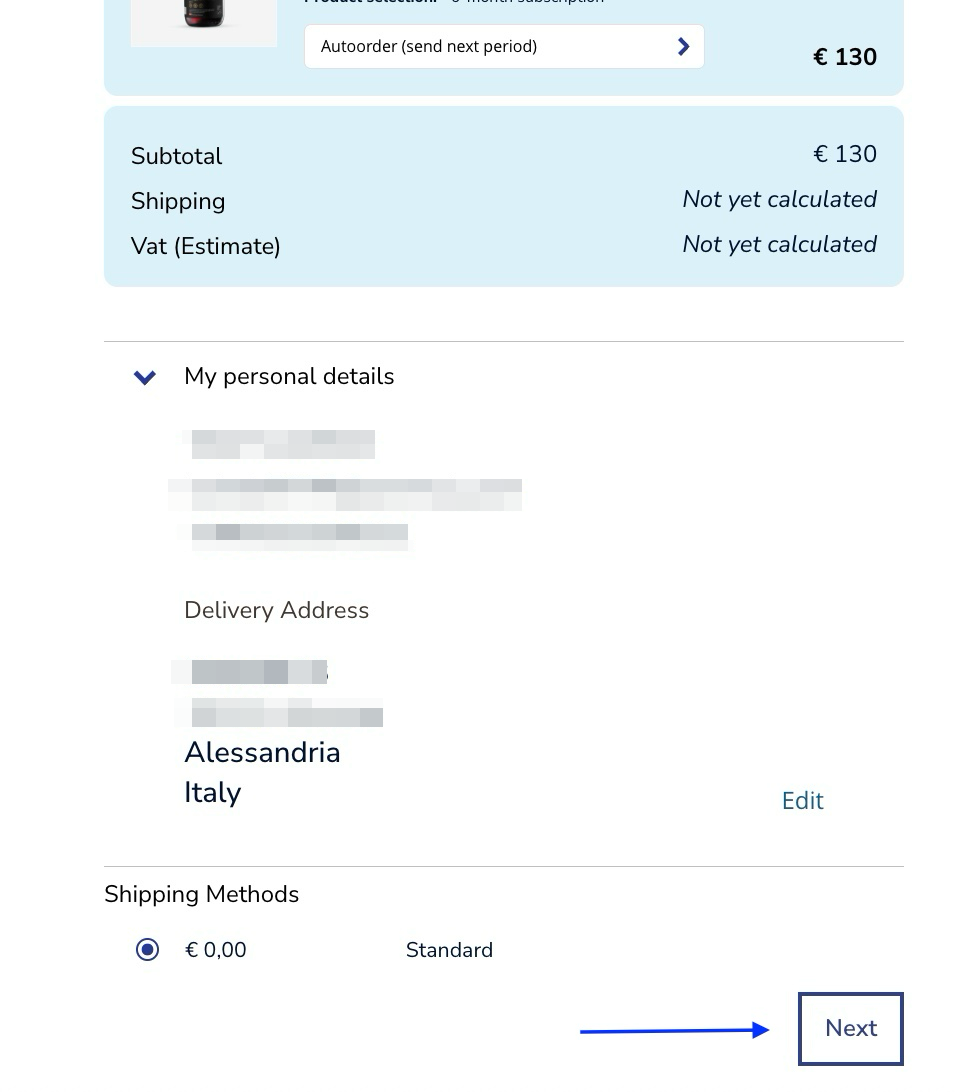 A monthly subscription is as default installed as autoorder. You just need to click on the -next button at the bottom to continue.