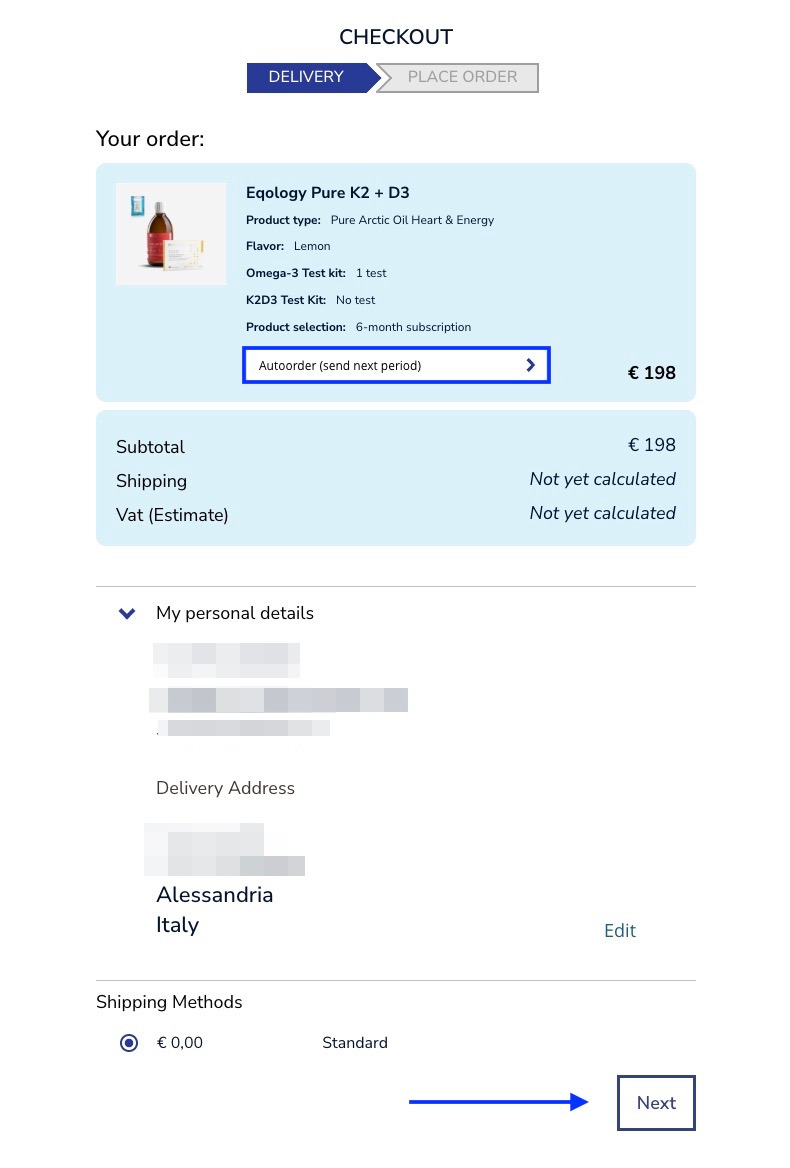 Take note: Only an autoorder delivery option is available for this order because it is a monthly subscription.