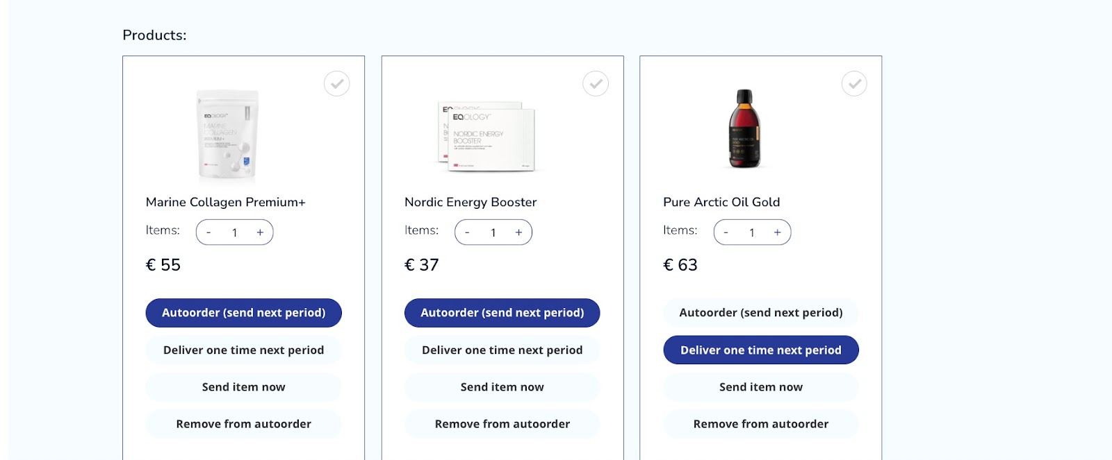 Let’s say we want to delete Marine Collagen Premium but you would like to have Nordic Energy Booster delivered only once with the next shipment.