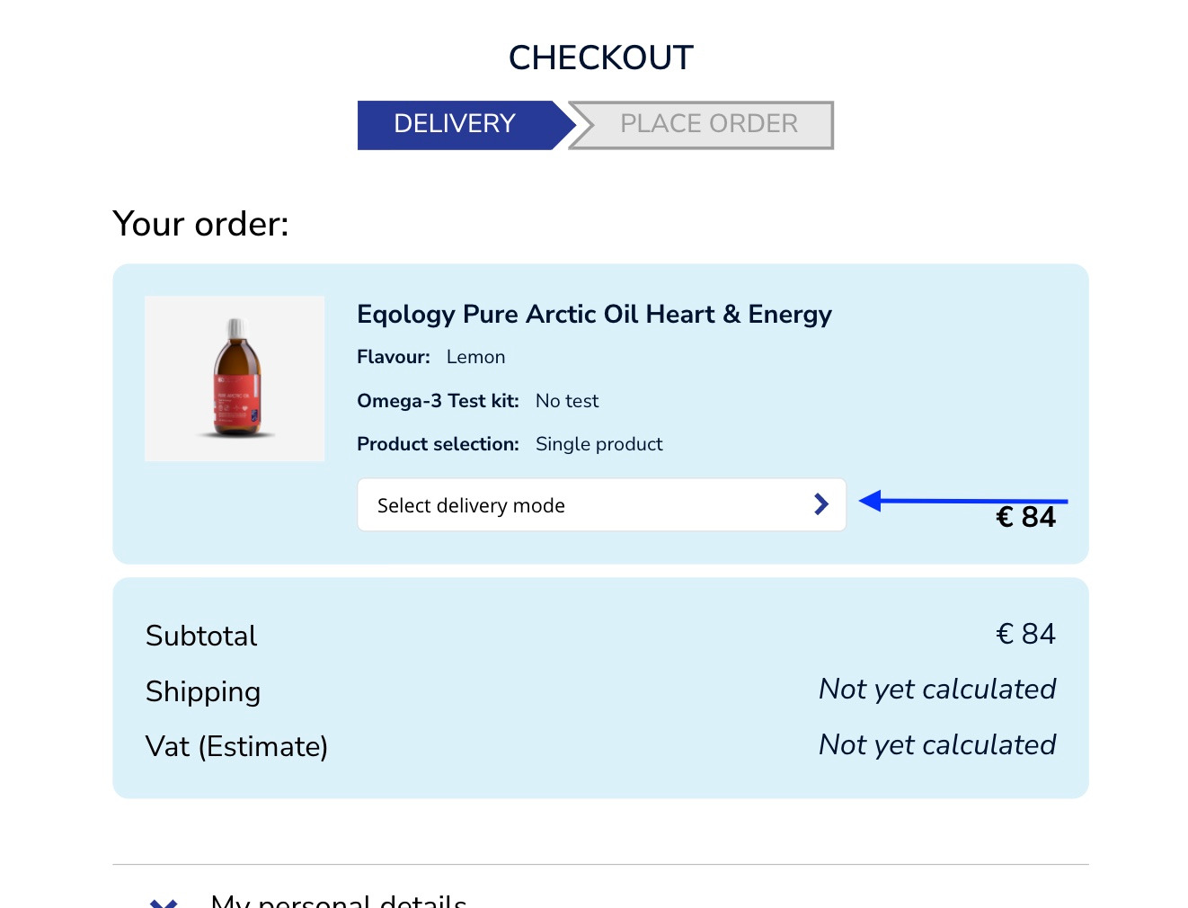 Once you wish to finalise your order you need to choose the delivery option, click on -select delivery mode.