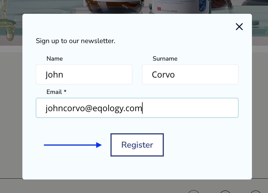 Just fill in your first name and surname and enter your e-mail address. Then click on the register button.