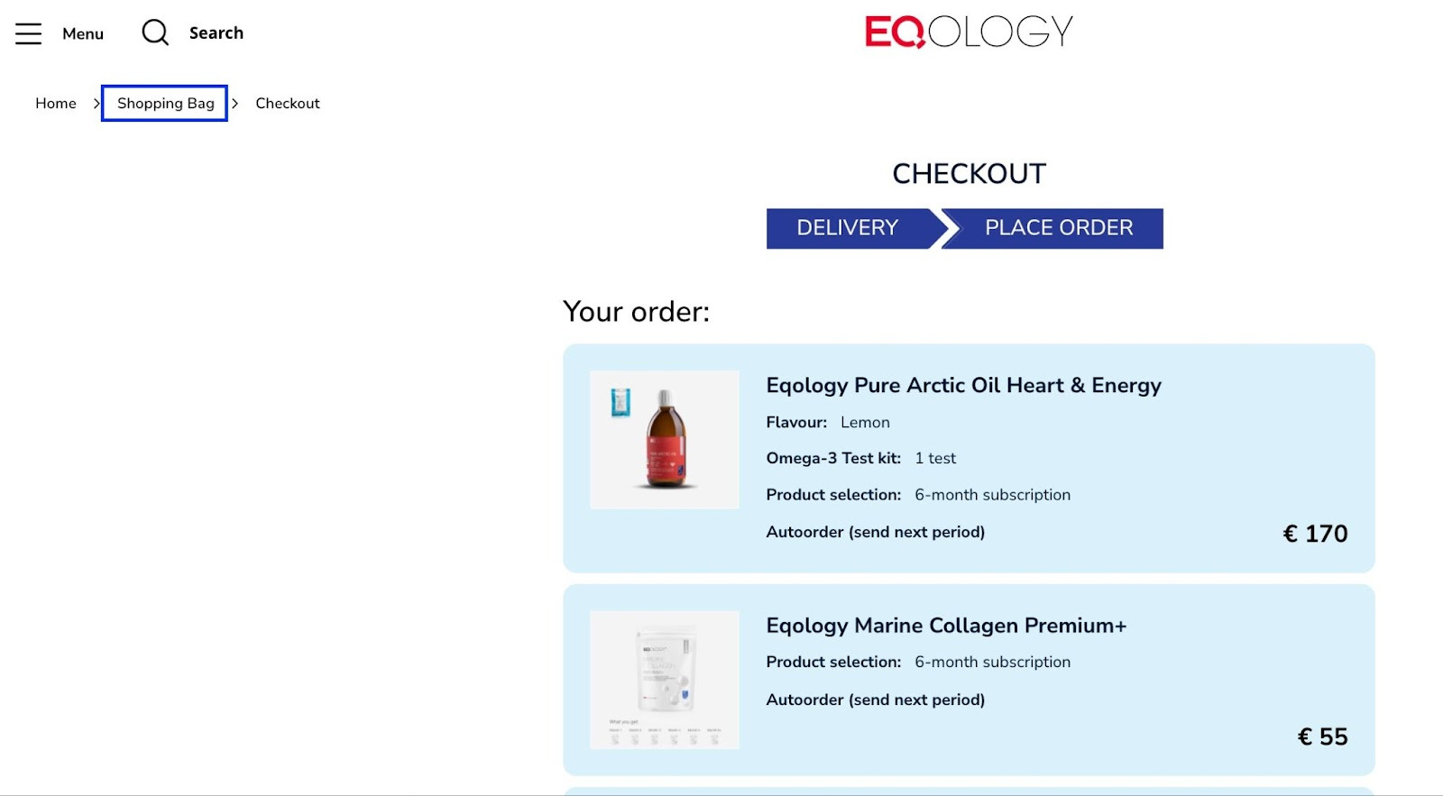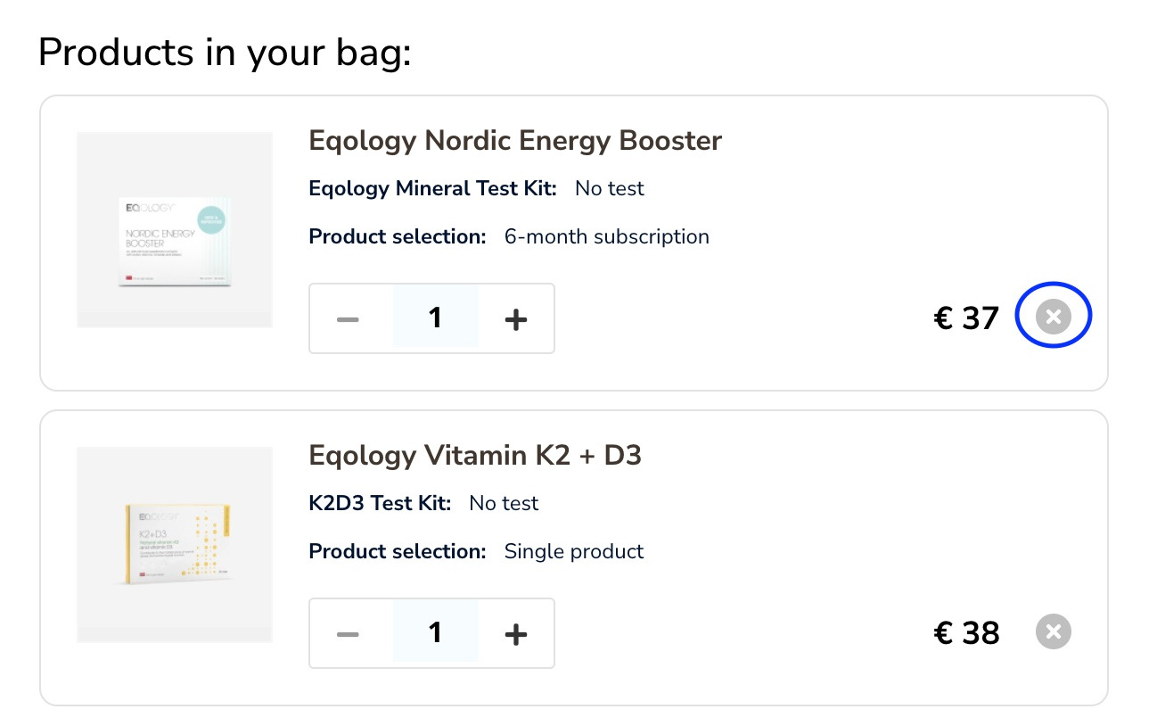 Then you get redirected to the content of your shopping bag where you can remove added products.