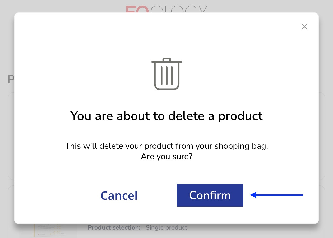 Click on -confirm to delete the product from your shopping bag.