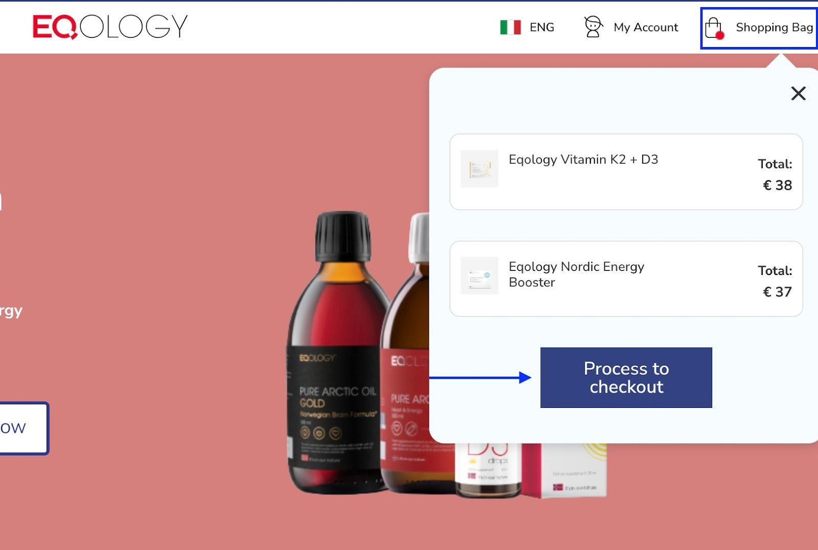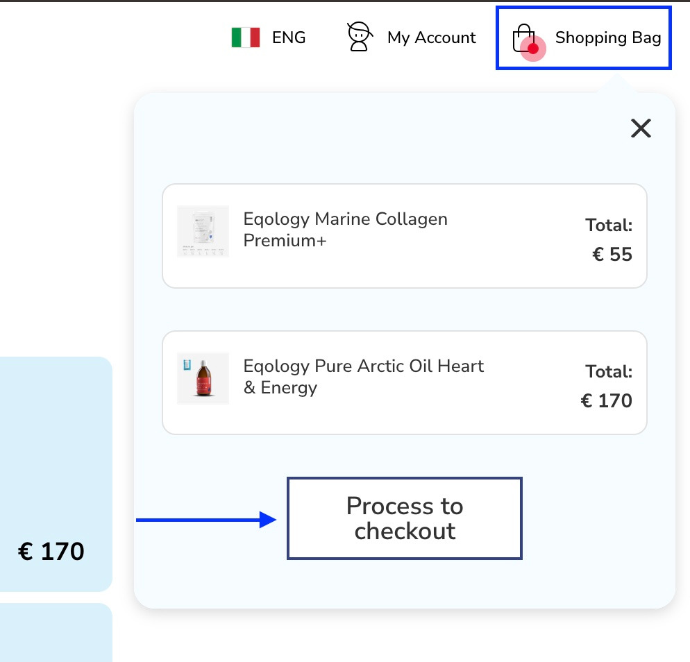Even when you go further with the checkout process and you don’t see the cross icon anymore you can still just click on the shopping bag and then on -process to checkout.