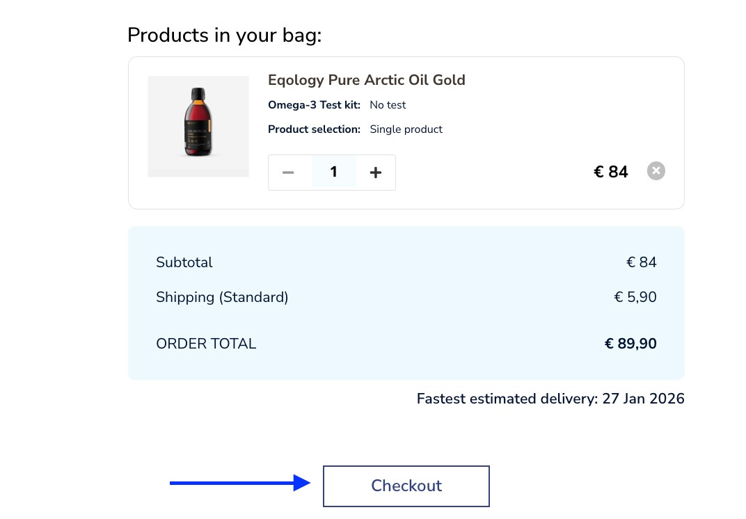 Here you can set the amount of the product you wish to order and then just click on the checkout button.