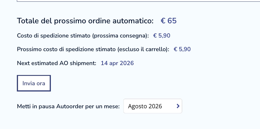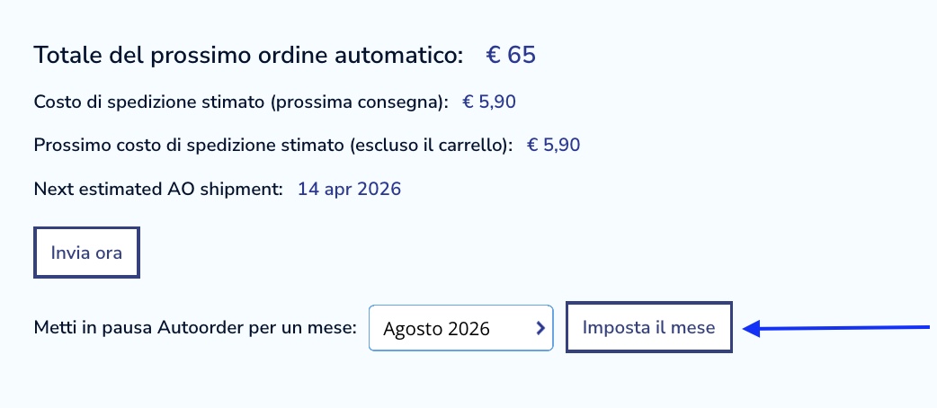 Puoi sospendere l'abbonamento per un mese all'anno direttamente dal tuo account. Vai su “Il mio account” e poi su “I miei ordini”.
