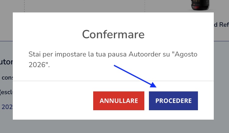 Sotto la tabella dell'abbonamento è presente un'opzione che ti permette di scegliere il mese in cui desideri sospendere l'abbonamento. Clicca e scegli il mese desiderato.