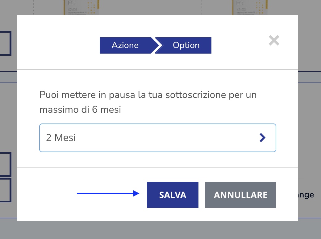Seleziona il numero di mesi che desideri sospendere; nel nostro caso sono due mesi. Poi clicca su "Salva"