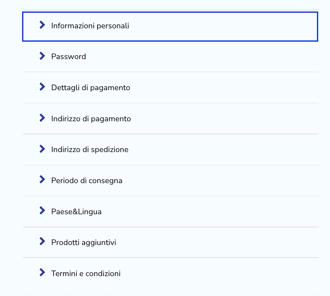 Cerca la scheda “Informazioni personali” e cliccaci sopra.