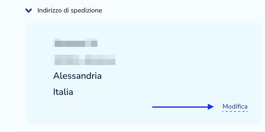 Attenzione: la modifica dell'indirizzo riguarda gli ordini successivi; gli ordini già elaborati ma non ancora pagati verranno spediti al vecchio indirizzo. Per correggere l'errore, contatta il nostro team di assistenza. Se gli ordini sono già stati pagati, non sarà più possibile modificare l'indirizzo di consegna del pacco.