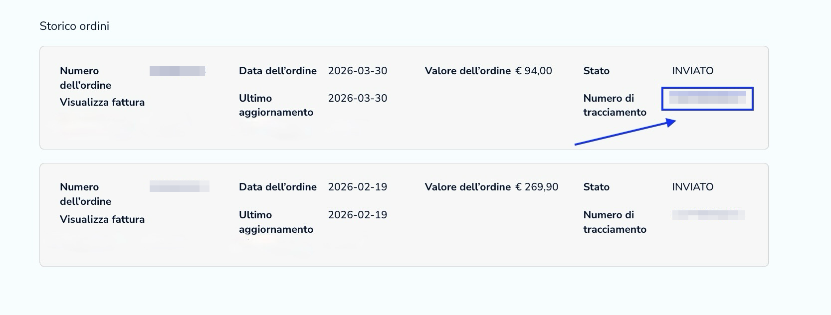 Se hai cancellato per sbaglio l'e-mail di tracciamento o non l'hai ricevuta, puoi trovarla nel tuo account.