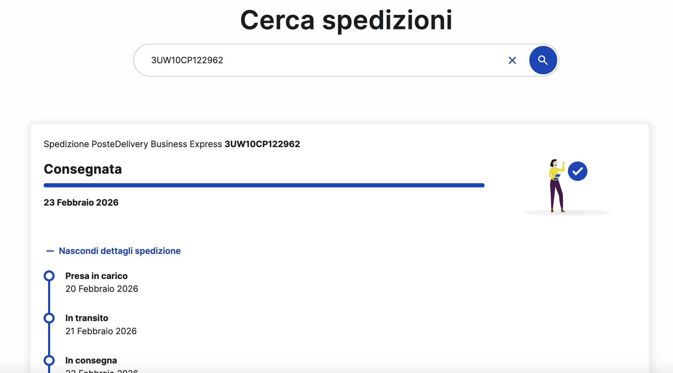 Verrai quindi reindirizzato alla pagina di tracciamento del corriere, a seconda del Paese o del corriere utilizzato.