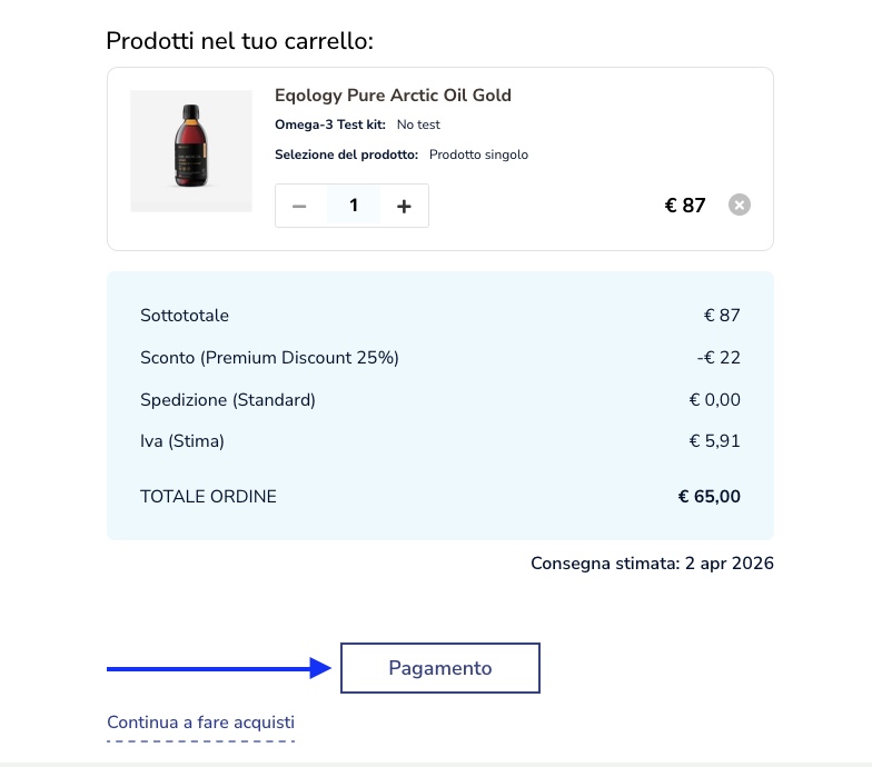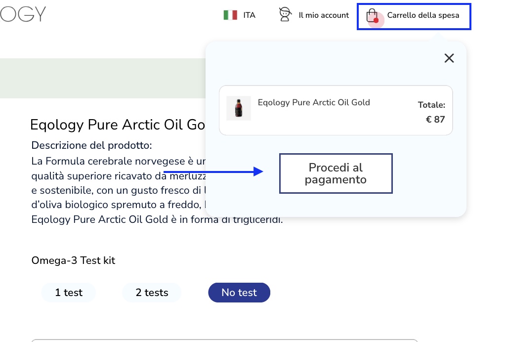 Qui puoi inserire la quantità del prodotto che desideri ordinare e poi basta cliccare sul pulsante “Procedi al pagamento”.