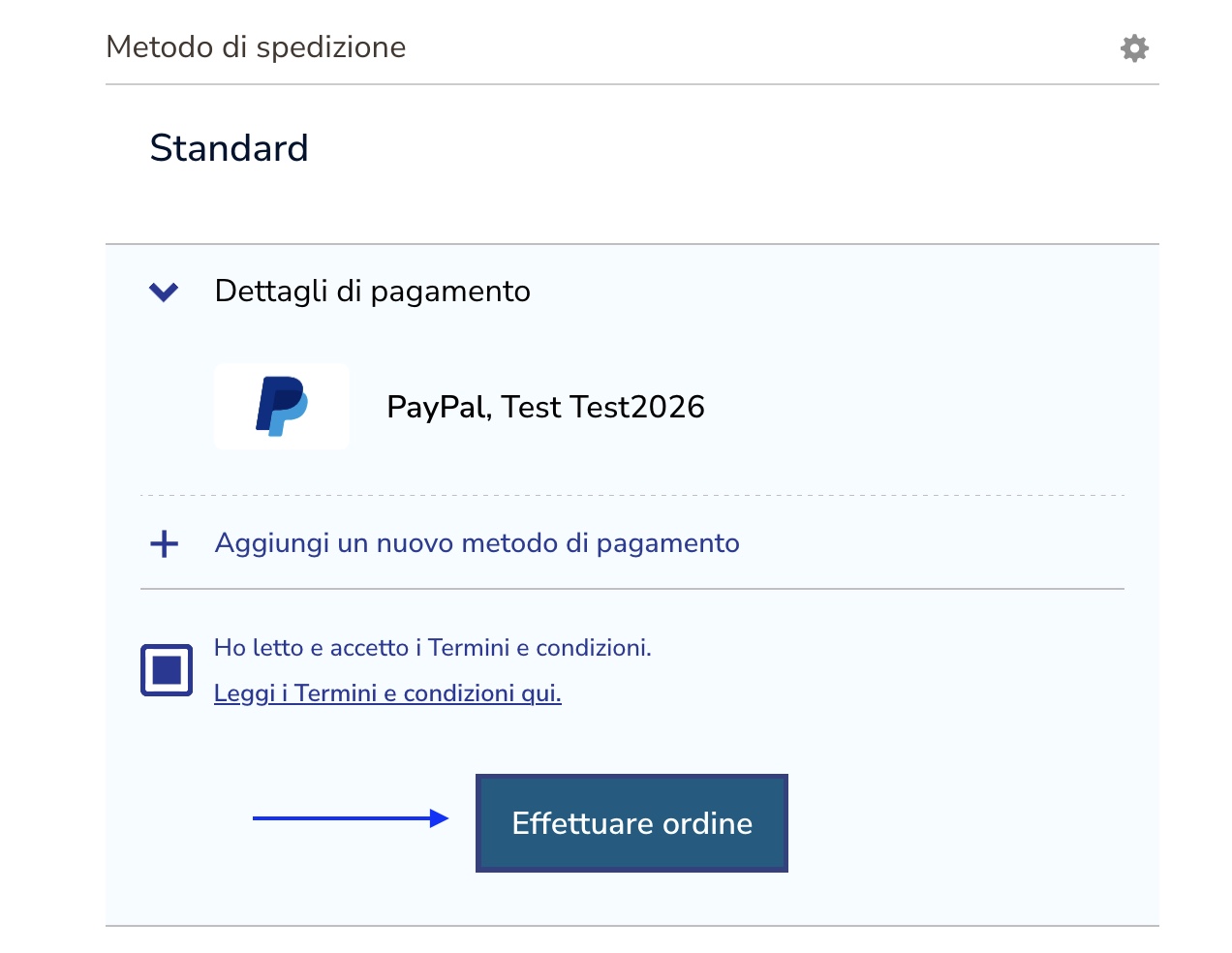 Per confermare e completare l'ordine, clicca sul pulsante “Effettua ordine”.