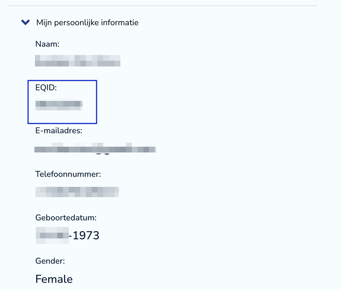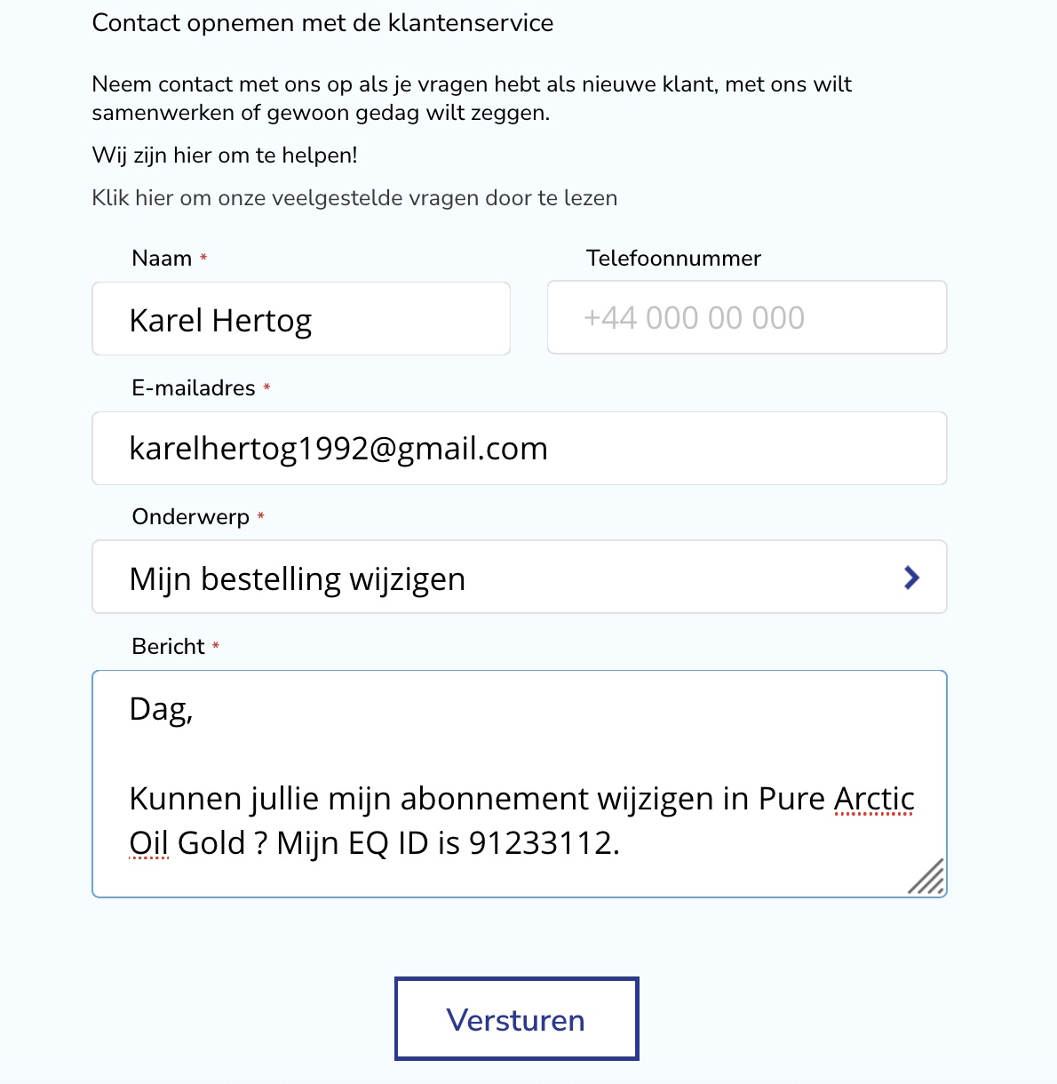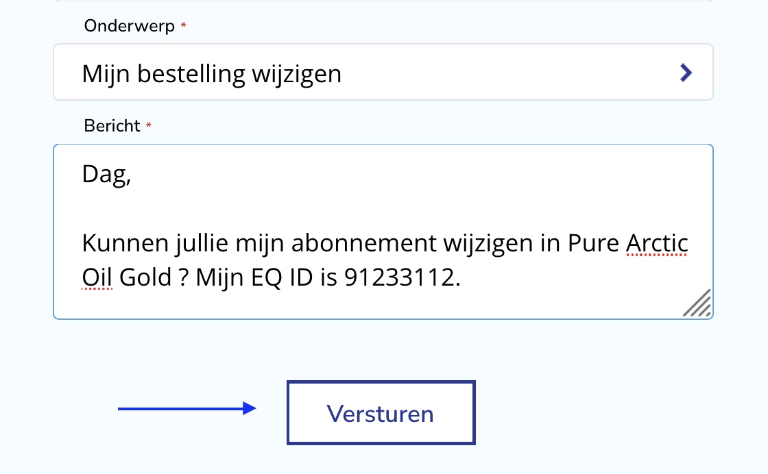 Vergeet niet om altijd uw EQ ID-nummer in uw e-mail te vermelden. Dit bespaart ons veel tijd en werk doordat we direct toegang hebben tot uw account. U kunt uw EQ ID-nummer vinden in een van de e-mails die u van ons ontvangt of in uw account onder uw accountgegevens.