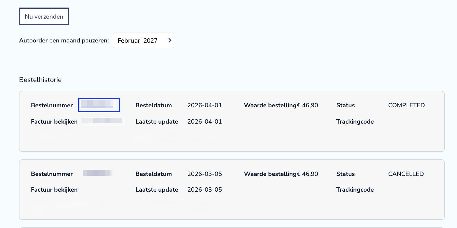 Indien relevant kunt u ook uw bestelnummer vermelden als u dit wilt wijzigen of er een vraag over heeft. Ga opnieuw naar "Mijn account" en "Mijn bestellingen":