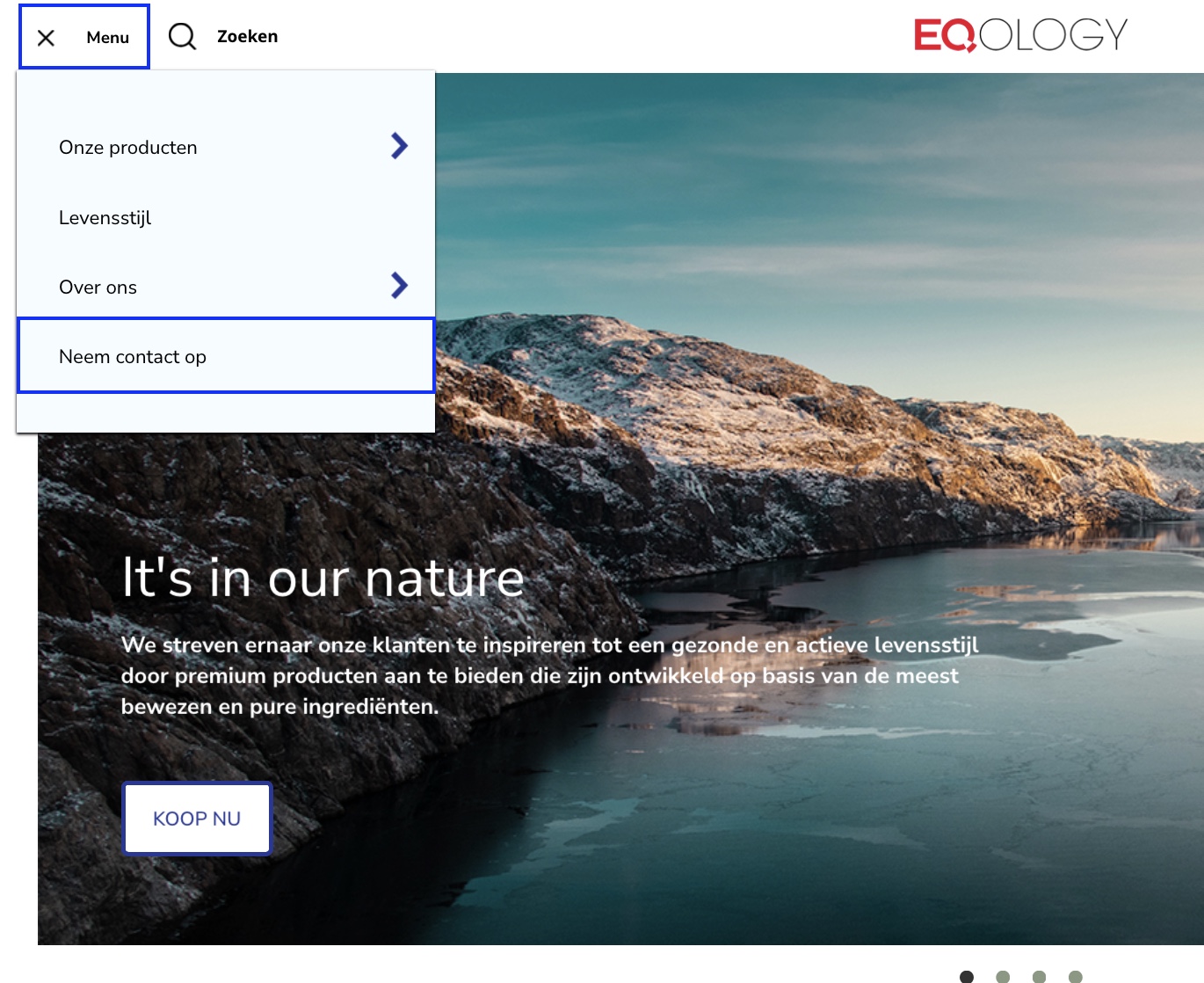 Wanneer u de benodigde informatie al heeft, kunt u op het menu linksboven klikken en vervolgens op "Neem contact op".