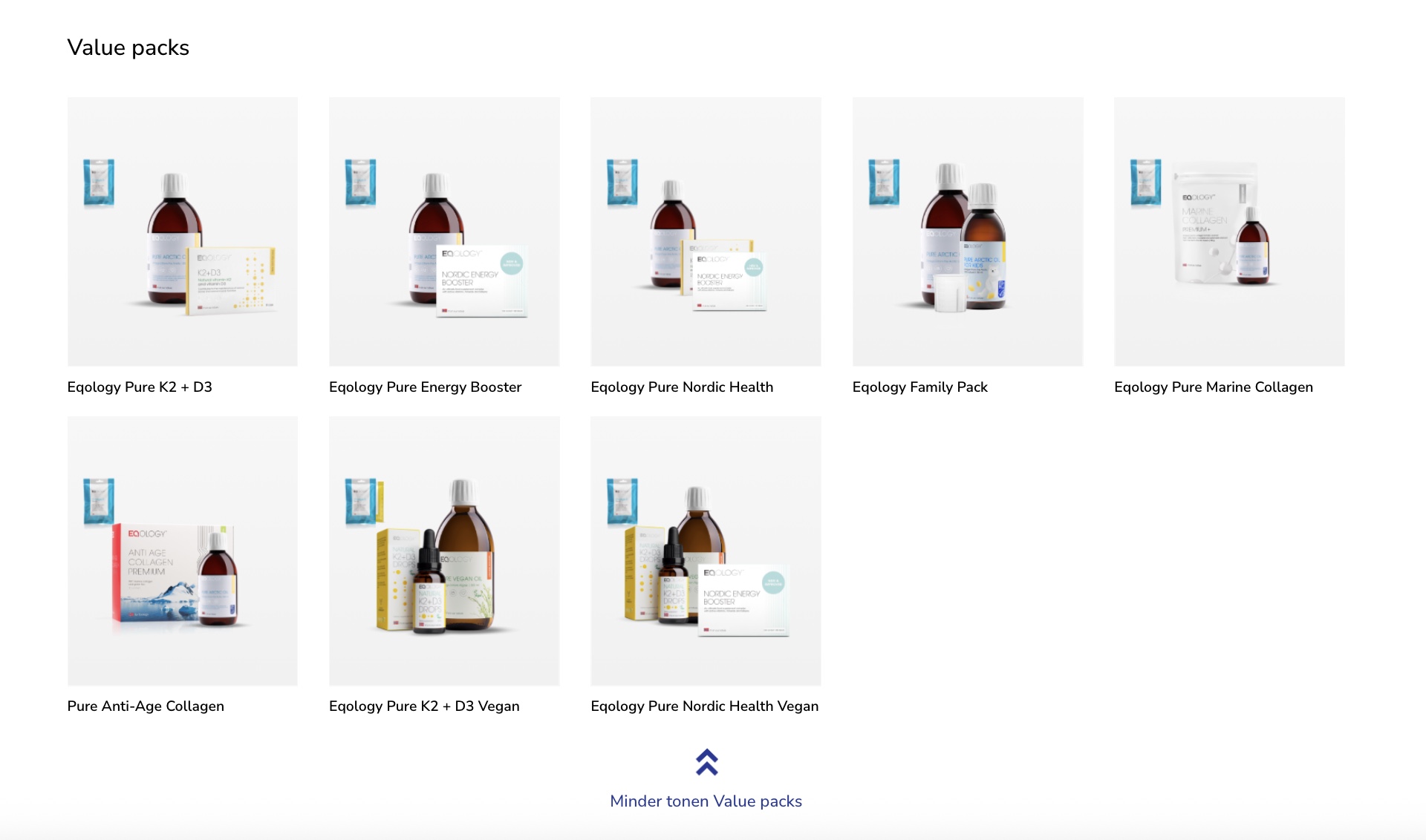 Een Value pack is een combinatie van minimaal twee producten die u kunt bestellen binnen een maandelijks abonnement. Value packs geven u een extra korting per product en test. Al die Value packs bestaan uit omega 3-olie, een omega 3-test/K2+D3/mineraaltest en één of meerdere andere producten.