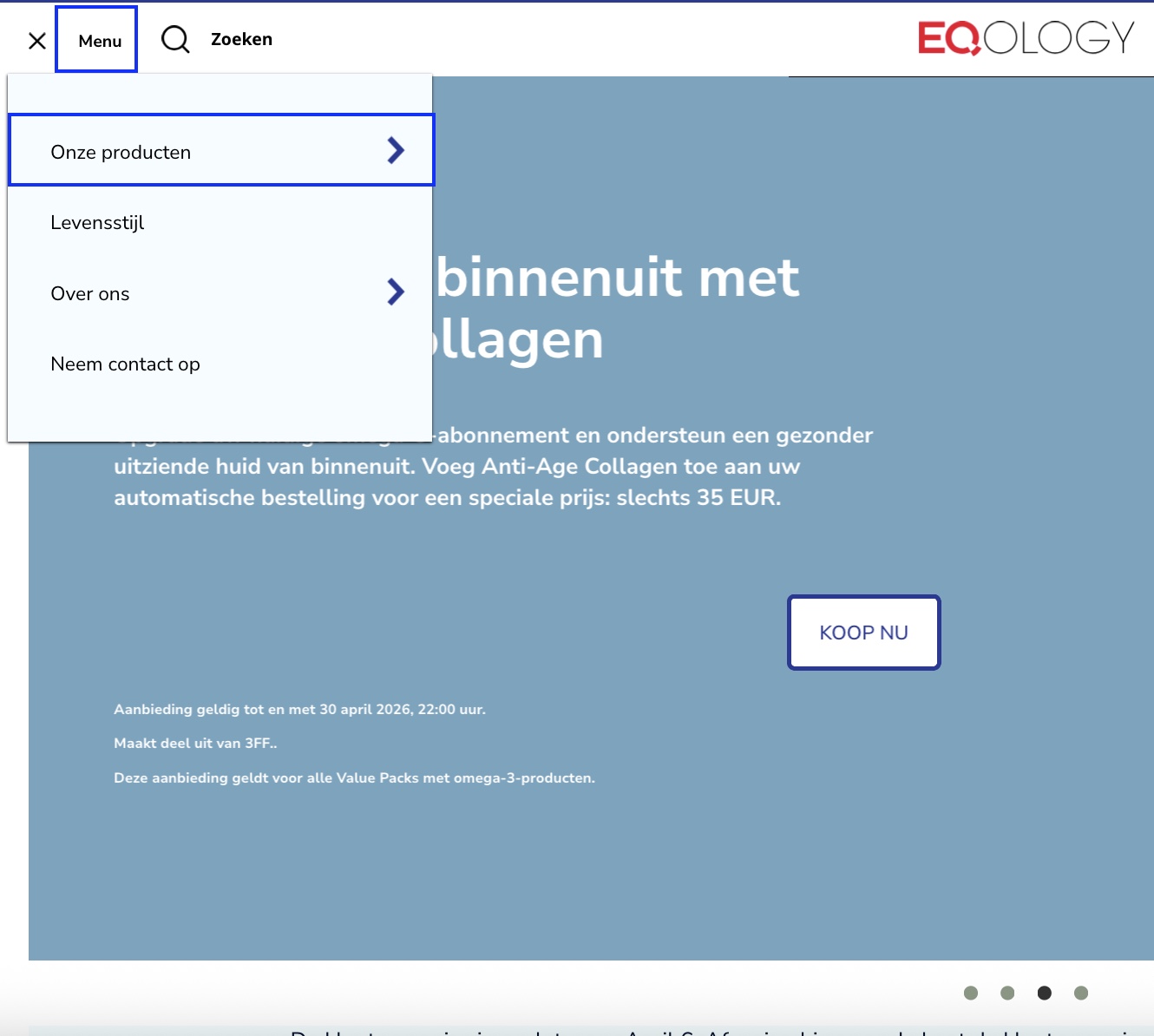 Om een abonnement zonder test te bestellen, gaat u naar het menu in de linkerbovenhoek en klikt u op “onze producten”.