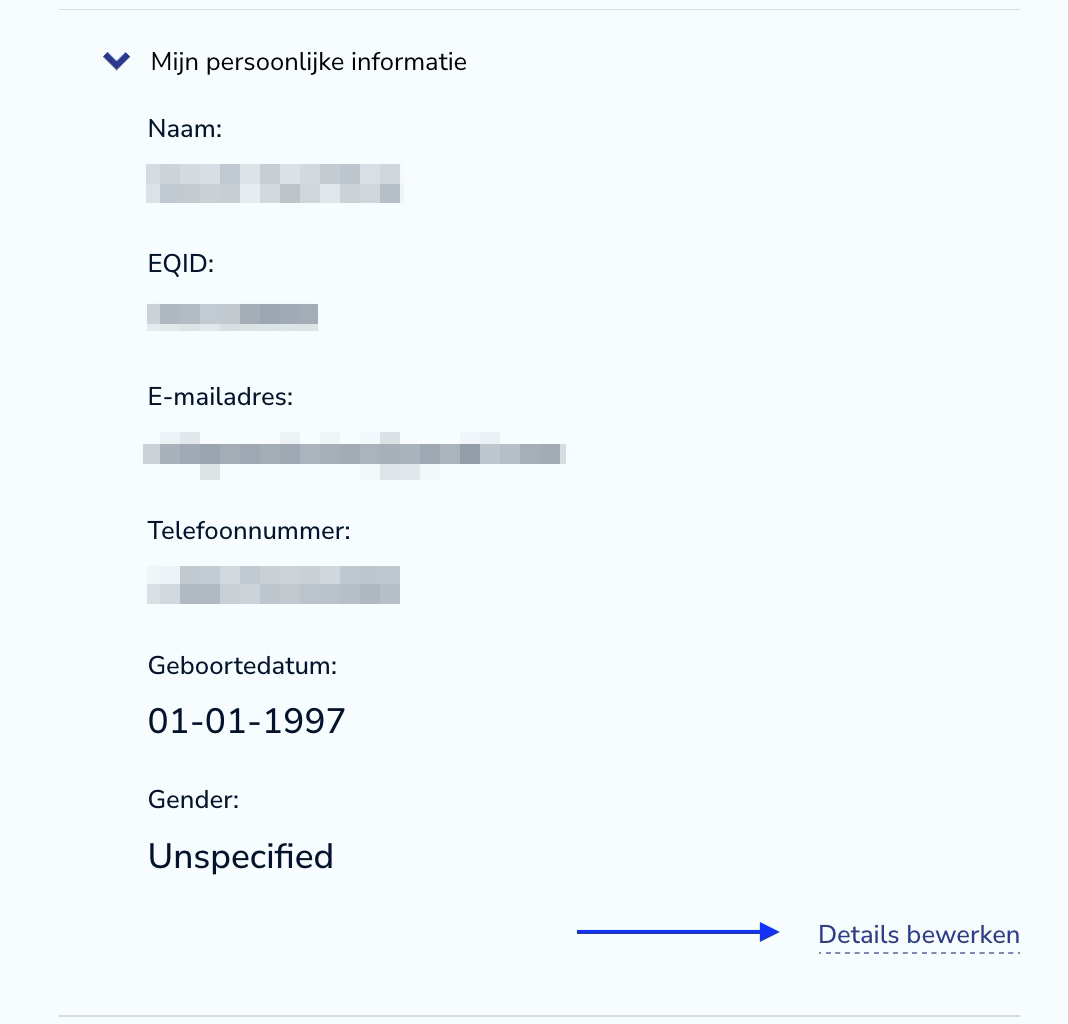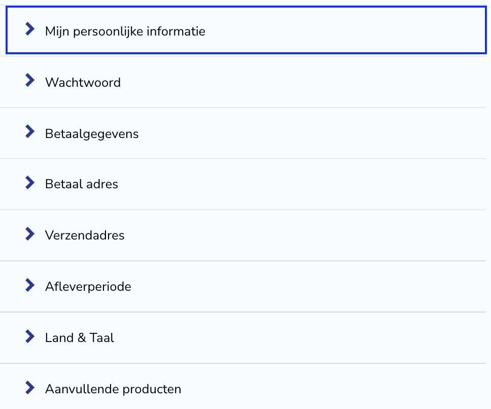 Zoek het tabblad “Mijn persoonlijke informatie” en klik daarop.