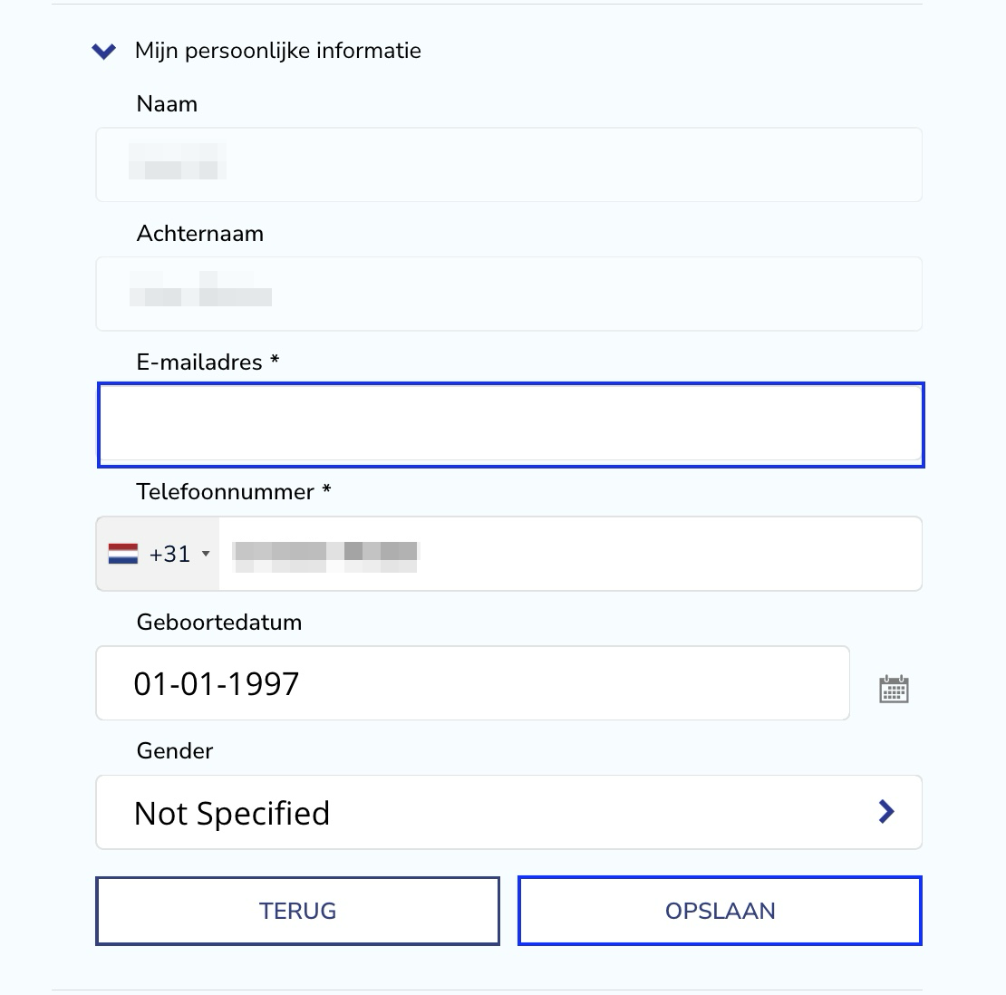 Hier kunt u uw e-mailadres wijzigen. Wanneer u klaar bent, klikt u op de knop “opslaan”.