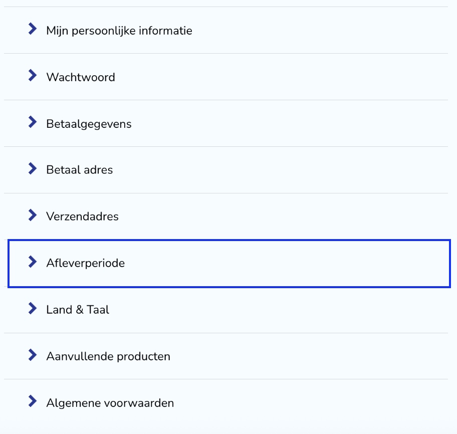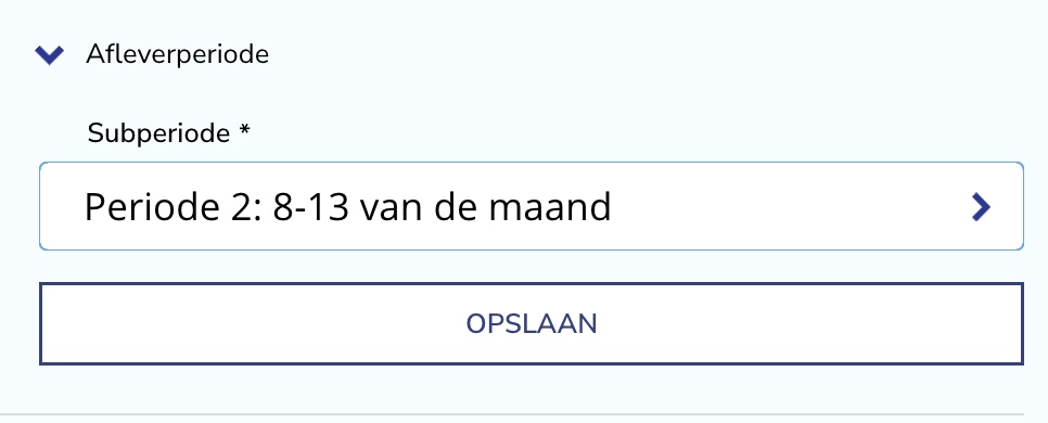 Scroll vervolgens naar de sectie “Afleverperiode” en klik hierop: