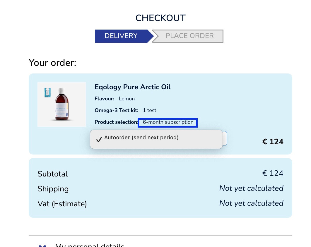 Afhankelijk van het type bestelling zijn sommige opties mogelijk niet beschikbaar. Bij een maandelijks abonnement kunt u deze alleen via uw automatische bestelling bestellen, wat betekent dat u ze eenmaal per maand ontvangt. Als u extra producten nodig heeft of ze sneller wilt ontvangen, zie: Hoe kan ik mijn autoorder direct laten versturen?